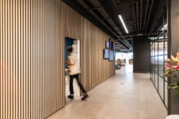 There’s a clear move towards softer, more welcoming environments. Think hospitality-influenced reception areas, acoustic layering, warmer lighting, and tactile materials.